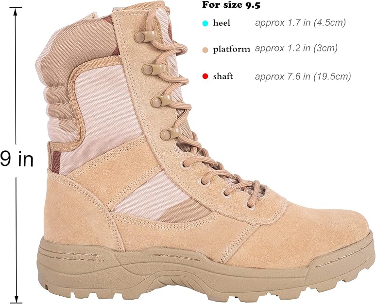 US-NYSCRT – Men’s Military Tactical Work Boots with Side Zipper, Lightweight Combat & Duty Boots for Law Enforcement, Security, and Outdoor Work (Black / Khaki)