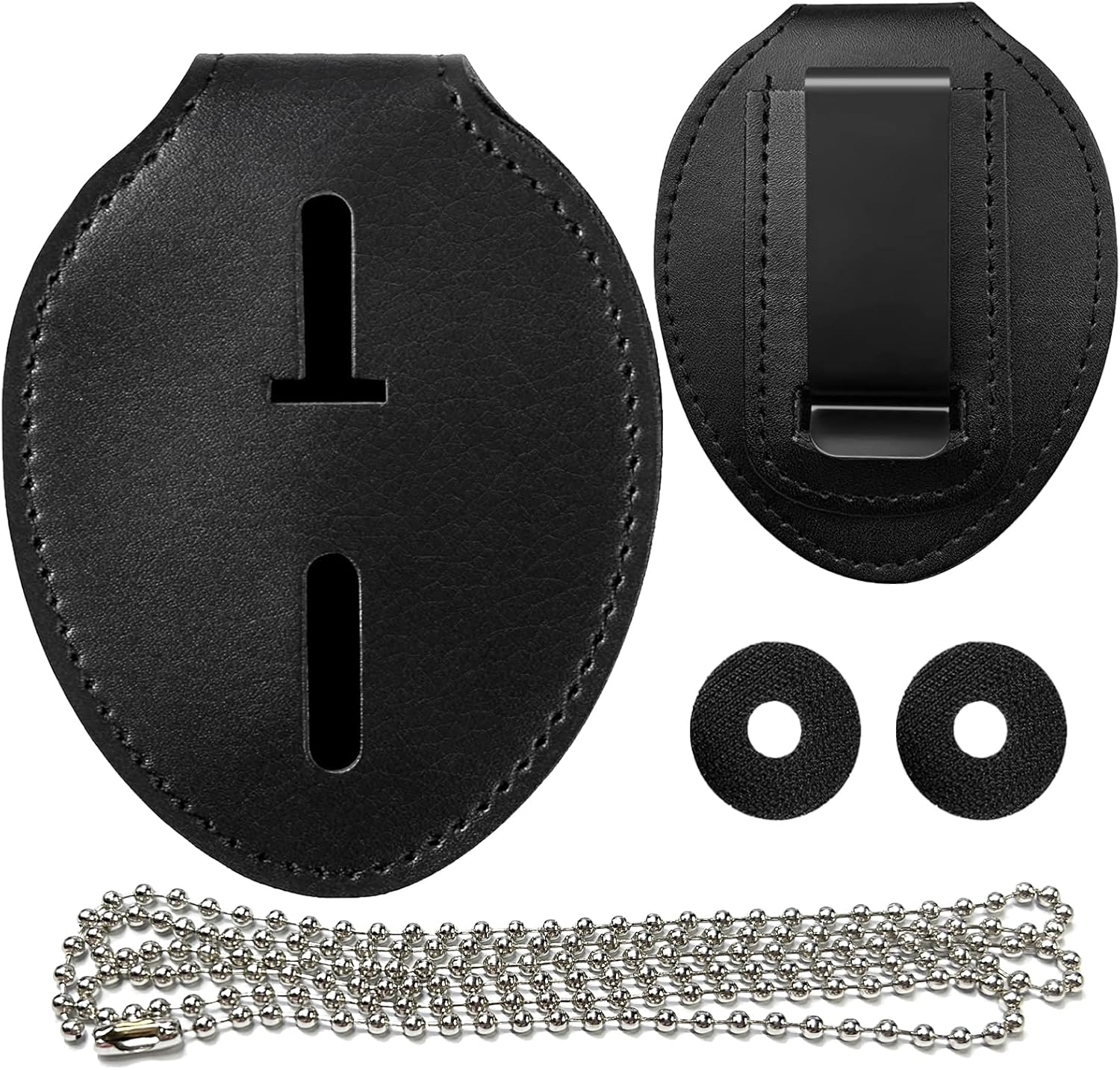 - Includes: Badge holder, detachable neck chain, and metal belt clip